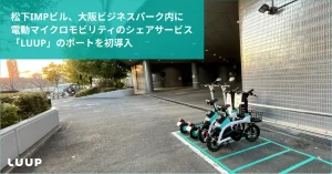 松下IMPビル、大阪ビジネスパーク内に電動マイクロモビリティのシェアサービス 「LUUP」のポートを初導入