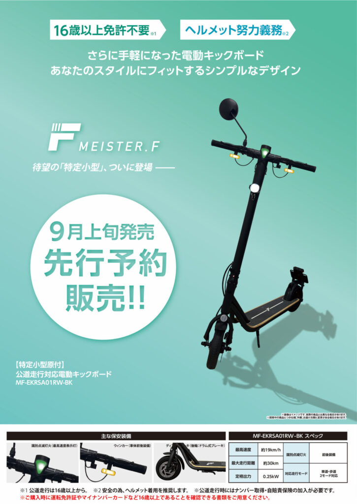 パーソナルモビリティブランド【Meister F】電動キックボード、ホームセンターコーナンで取り扱い開始。