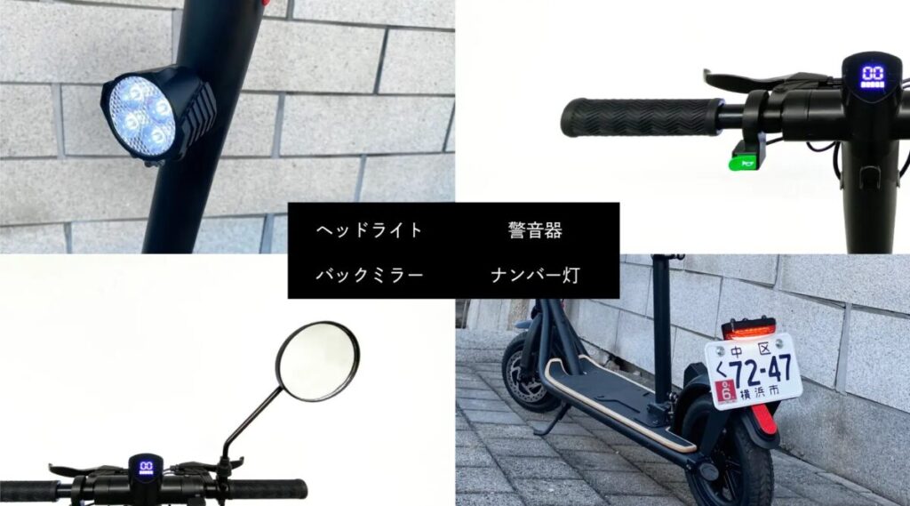 ※ナンバーを取得した本商品は2023年7月以降も、50ccの原動機付自転車と同じ区分の電動キックボードとして有効な運転免許証と、走行時にはヘルメットの着用して公道を走行していただけます。