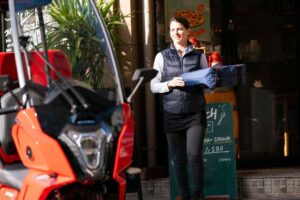 大型スクリーンとルーフ、独立懸架リアサスペンションによる3輪構造、前後13インチ大径ホイールという独自の車体構成により、従来のビジネスバイクが持つさまざまな課題を解決する、原付一種(50ccクラス)の電動3輪バイク。3.85kWhの大容量リチウムイオンバッテリーを搭載し、一回の充電で最大89km(30km/h定地走行値)の走行が可能。