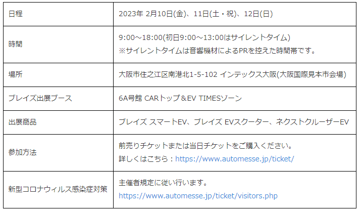 EVモビリティメーカー(株)ブレイズが「大阪オートメッセ2023」に出展します!