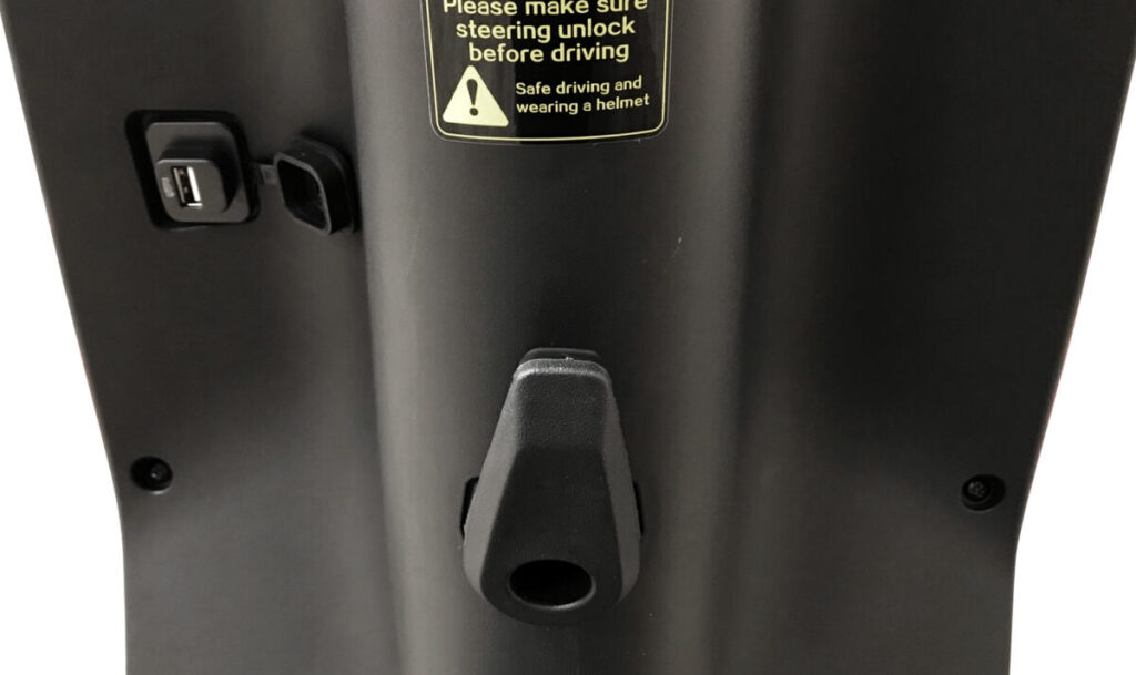 フックに荷物や買い物袋を掛け、USBポートを利用してスマホの充電をすることも可能です。