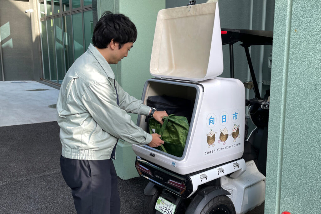 「ゼロカーボンシティ宣言」を行った向日市は、2050年までに二酸化炭素排出実質ゼロを目指し、公用車を環境負荷の少ないEV車へ順次切り替えを進めている。そのため、十分なボックス容量があり、据え置き式のバッテリーなため充電が容易で200Vの電源に対応している「AAカーゴ」が文書運搬業務の移動車両として採用された。