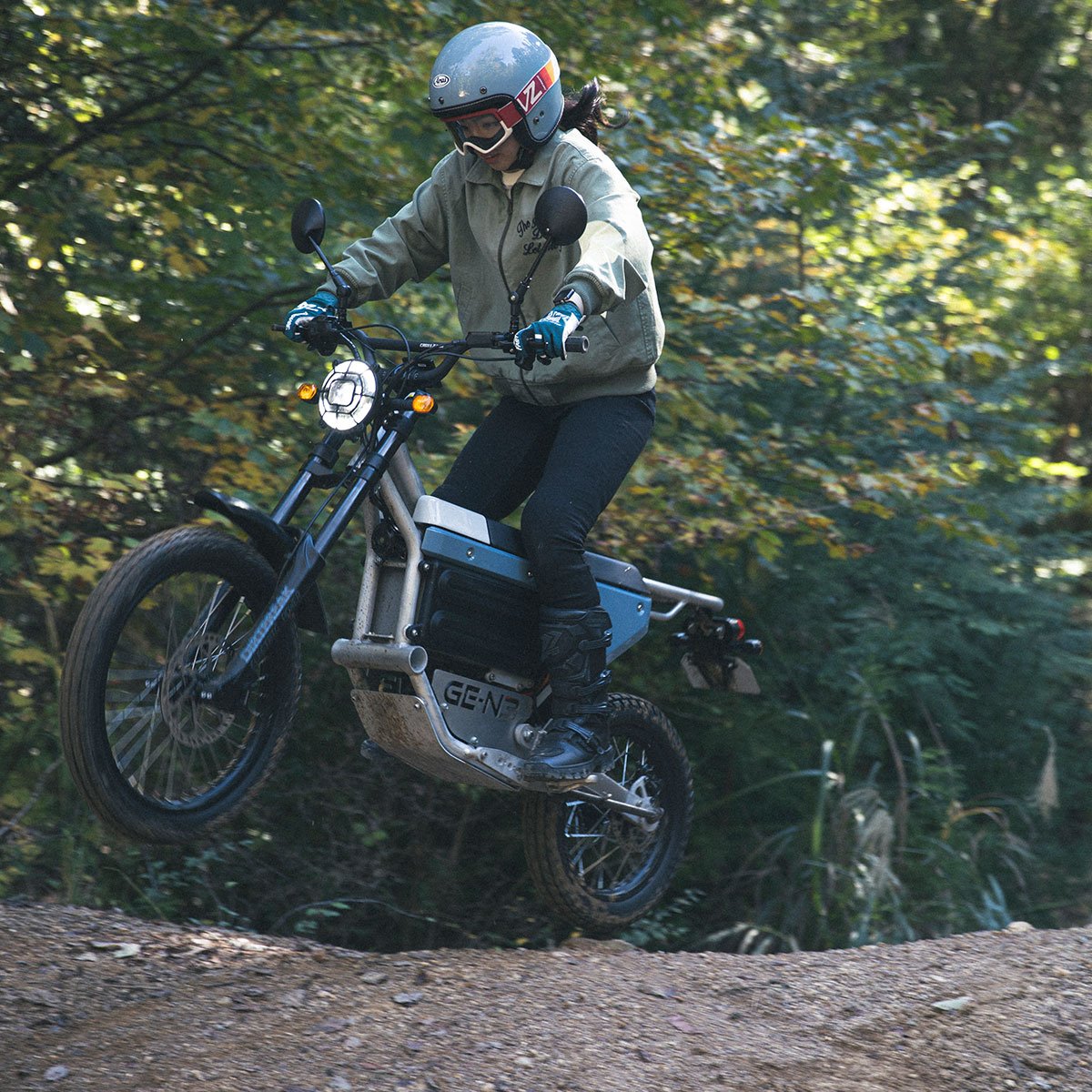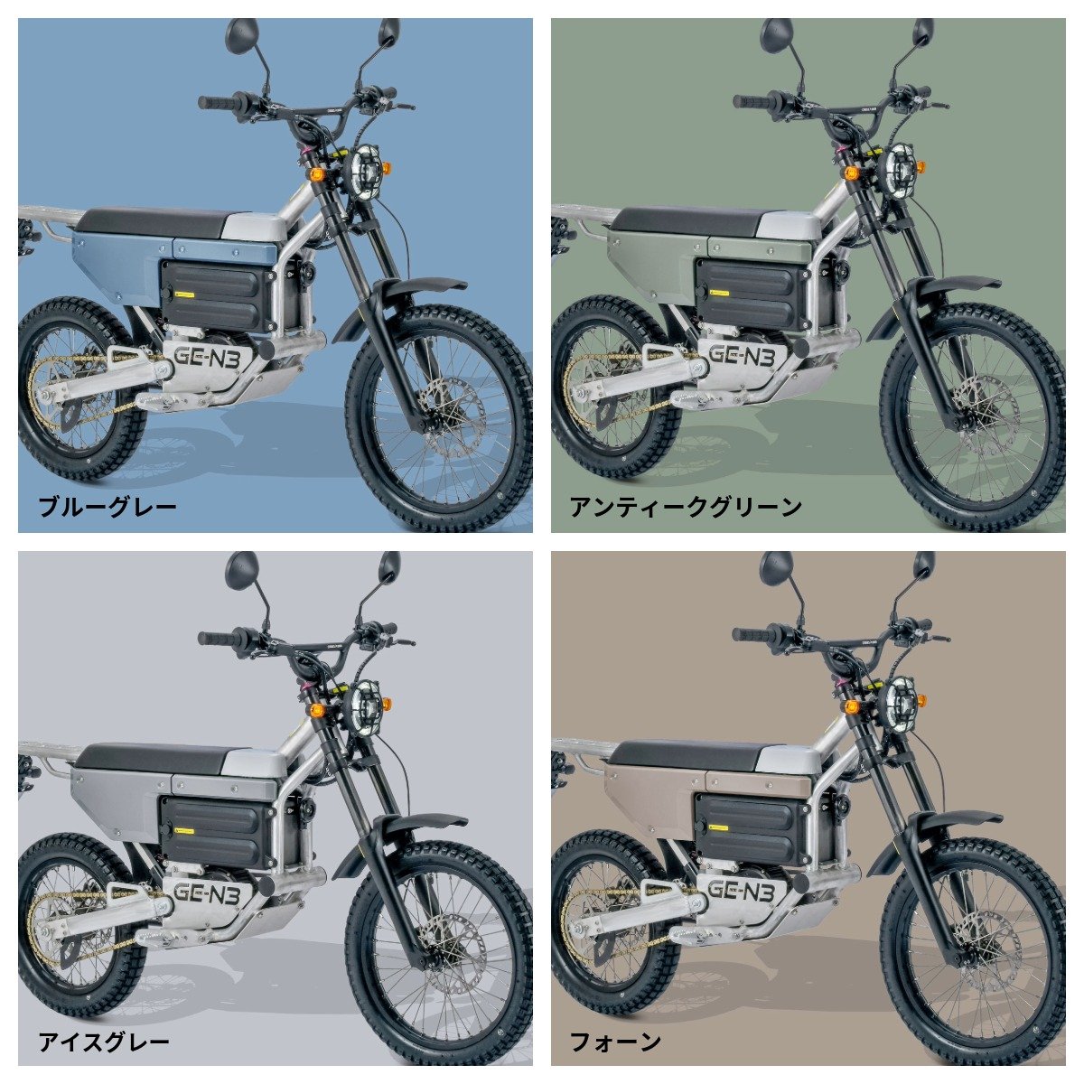 GE-N3は、軽量コンパクトな車体に高トルクの電動モーターを搭載し、舗装路から未舗装路まで幅広く対応する次世代の原付バイクである。また今回の新色は、街乗りにもアウトドアにも馴染む落ち着いた色合いが特徴で、既存のブルーグレー、アンティークグリーンと合わせて計4色展開となった。価格は396,000円(税込)。