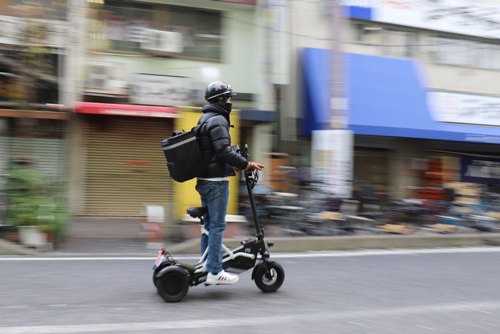 昨今利用者の増えている電動キックボードは、最高速度20km/h以下であれば免許不要となっていますが、PXiD-F2はあくまでもバイクと同じカテゴリーにあり、免許を持っている人が乗るナンバー付き車両という捉え方をしています。