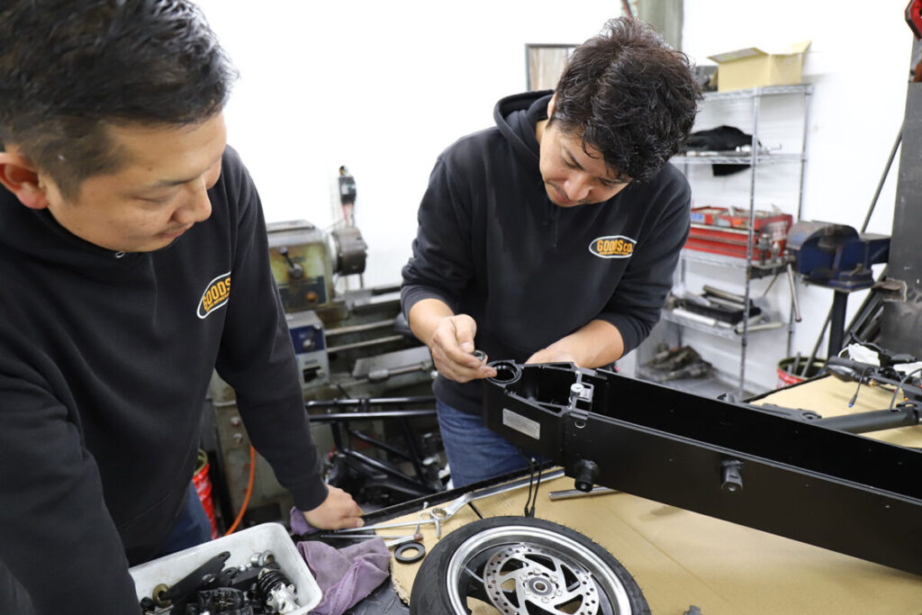 株式会社グッズは2001年の創業以来、日本国内において様々なオートバイの販売、修理、カスタム、オリジナルカスタムパーツの企画・開発・製造を行っており、海外オートバイメーカーの新規車両開発のデザイン担当なども行っています。