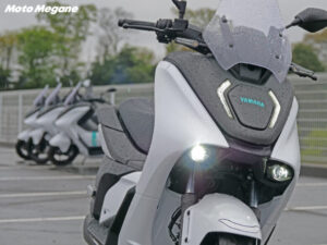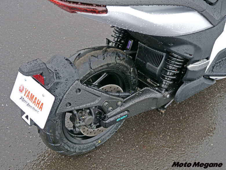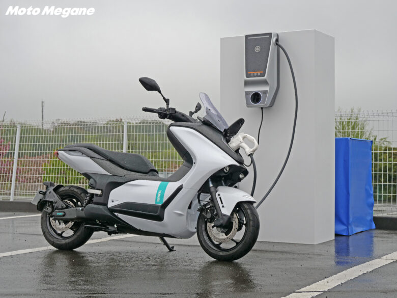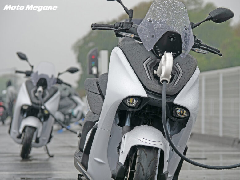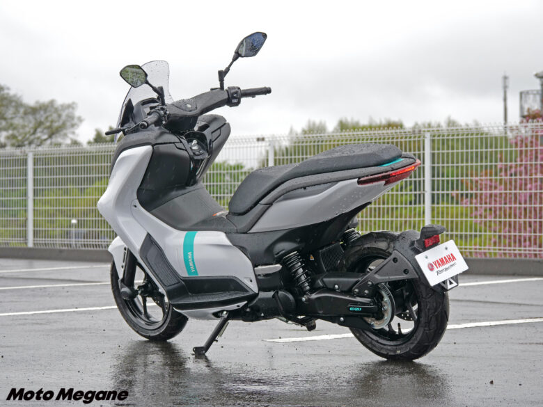 走りの部分だけでなく、日々の使い勝手を考えてフロントにレイアウトされた充電コネクターやフロントに用意された12V電源付き(右側のみ)のグローブボックス、バッテリーを着脱式でなく固定式とすることでシート下のトランクスペースも確保するなど、使用シーンが想像できる実用性の高さにも注目したい。近未来的でクリーンな雰囲気を演出する車体デザインは白と黒でシンプルにまとまっており、爽やかなブルーの差し色がなんとも映える。操作しやすいスイッチ類やスポーツバイク然としたアルミダイキャスト製リアアームにタンデムステップの上質な作り込みまで、まさにこれまでの二輪車生産技術に加えて、電動アシスト自転車や電動バイクといった様々な電動技術から世界最高峰レースのMotoGPをはじめとするレースシーン参戦で得たフィードバックまで、ヤマハ発動機の電動技術やバイクづくりのノウハウが凝縮した一台となっている。