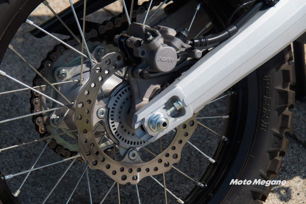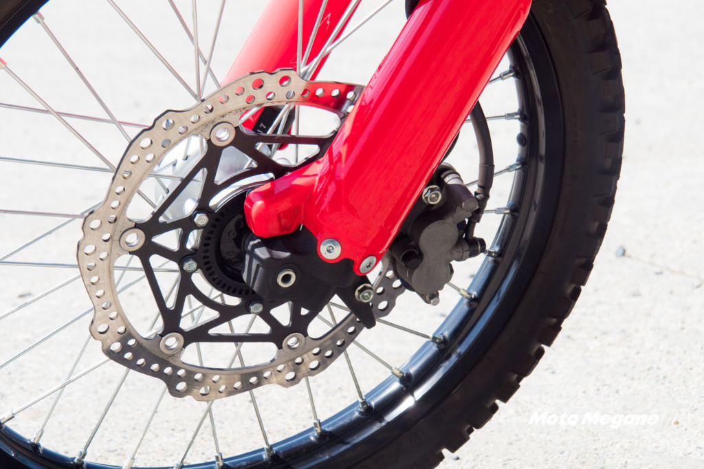 左右非対称の二眼LEDヘッドライトやナックルガード、未舗装路走行を想定してストロークが延ばされた前後サスペンションにキャンセル可能なABSをタイプ設定するなど250㏄オフロードバイクの枠を超える装備が与えられました。