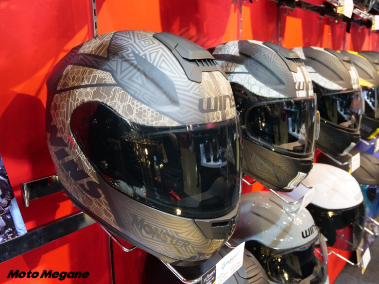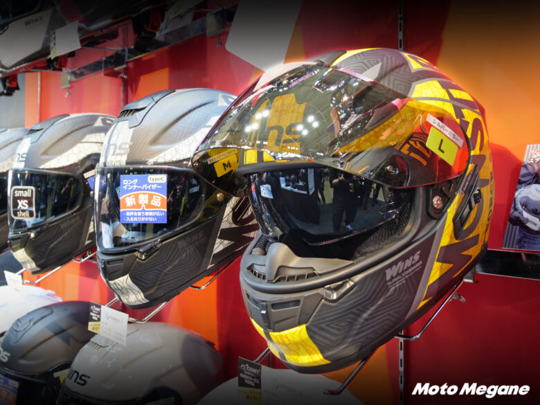 フルフェイス・ジェットタイプ・オフロードモデル・システムヘルメットまで、使用素材や仕様違いのバリエーションやカラーやグラフィック展開までもが豊富なモデルラインナップとなっており、充実したアクセサリーパーツと組み合わせることによって膨大な種類となる。これだけ多くの商品の中から選ぶというのも大変かも知れないが、自分のバイクライフにぴったり合ったお気に入りのヘルメットをじっくり選ぶことができるというのも、ウインズジャパンならではの贅沢な悩みかも知れない。