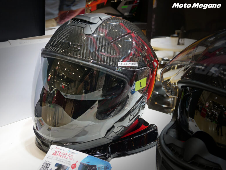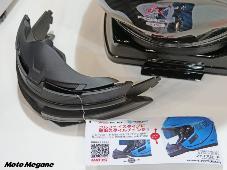 大人気のカーボンヘルメット「A-FORCE RS」シリーズや、ドライファイバー素材を使用することでさらに安価になった「G-FORCE SS」など、主力のヘルメット製品に注目してしまいがちだが、今回新たに登場したくもり止めレンズ「FOGWIN MAX」やジェットヘルメットに取り付けることで視界の広いワイドビューフルフェイスへと換装が可能となる「フェイスガード」など、アクセサリー類も要チェックだ。