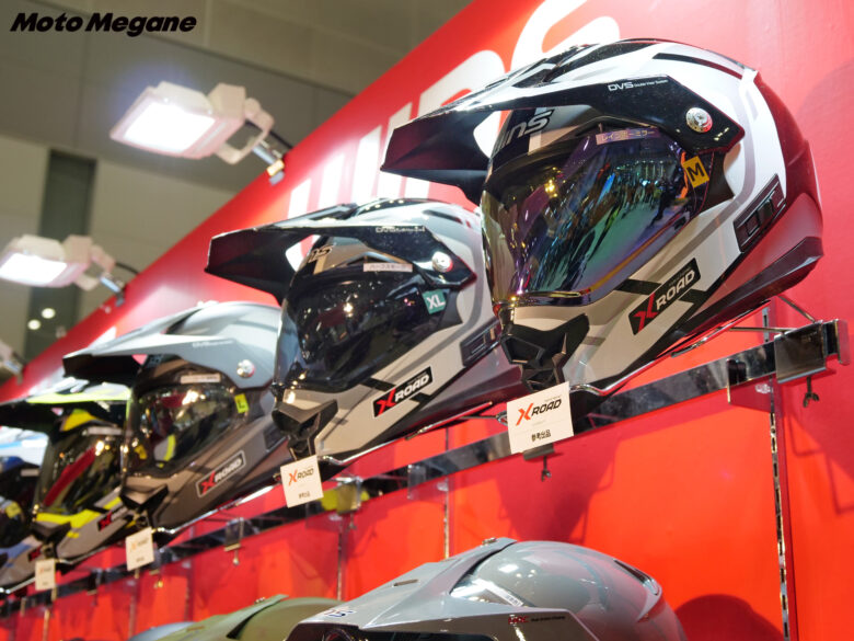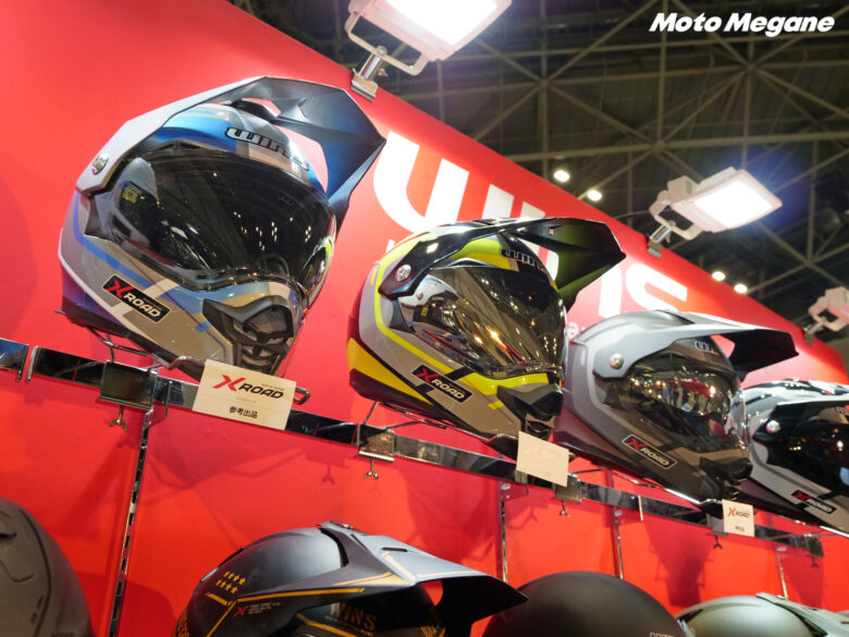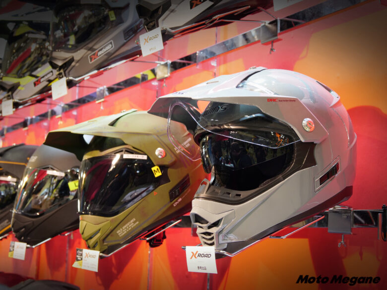 標準のトレイルスタイルからバイザーを外したストリートスタイルや、シールドを外してゴーグルを装着するモトクロススタイルなど、1つのヘルメットで3つのスタイルが楽しめると一躍話題となった「X-ROAD」シリーズの新たなカラーバリエーションも多数参考出展されていた。さらにオフロードの雰囲気を感じさせるダクト形状が異なるモデルも出展されており、こちらも今後の展開が非常に気になるアイテムだ。