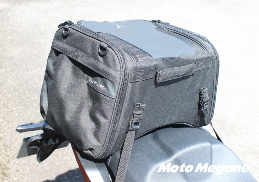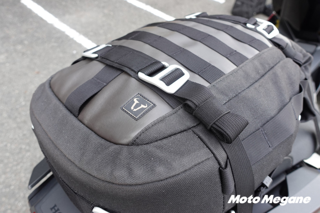 シートやキャリアに装着できてバックパック機能もあるのでオートバイのいろんなシーンで使えます。