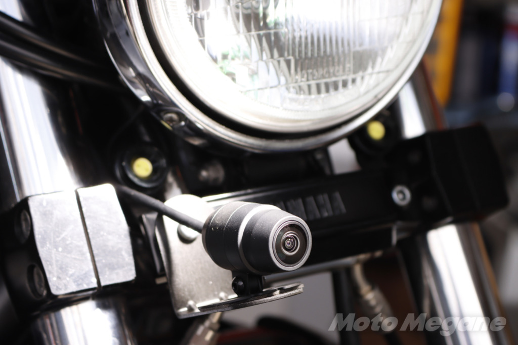 カメラの大きさは27mm径で全長43mm。バイクの車体だと、隠せる場所も少ないので目立ってしまうのは致し方ないところ。