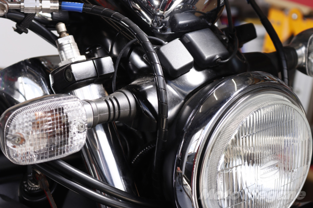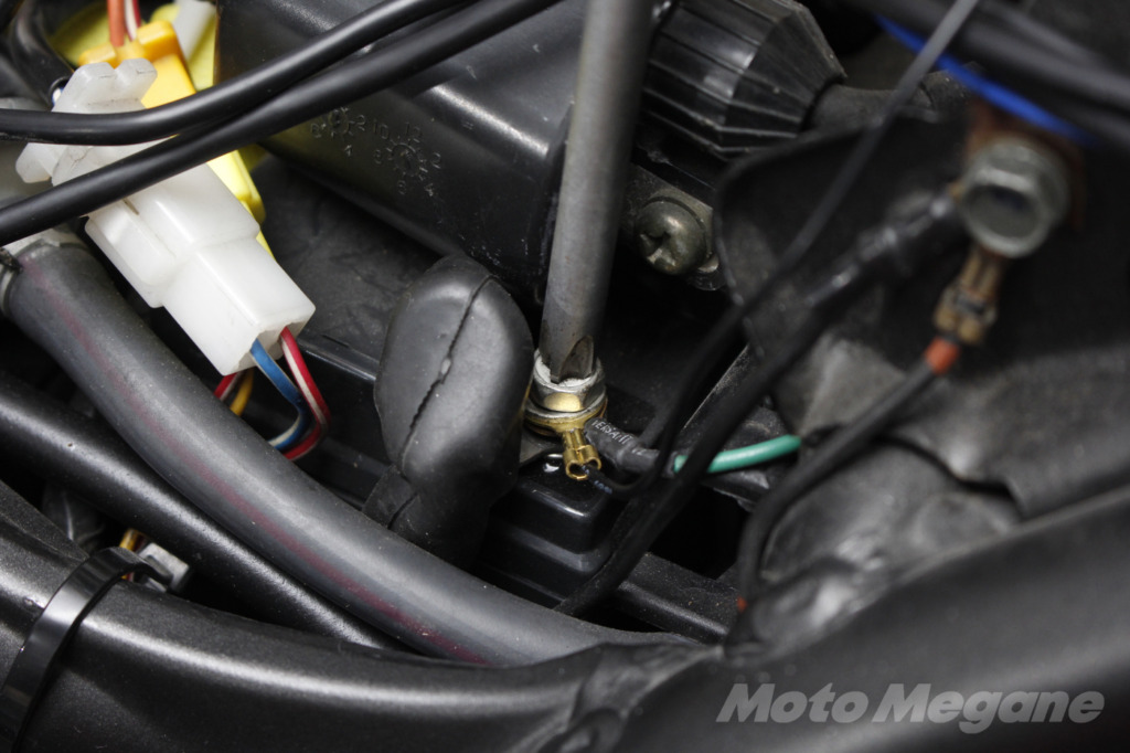 今回は撮影のため急いで付けたのだが、Vmax1200の場合、ここまでバラさないと配線を通すことは出来なかった。