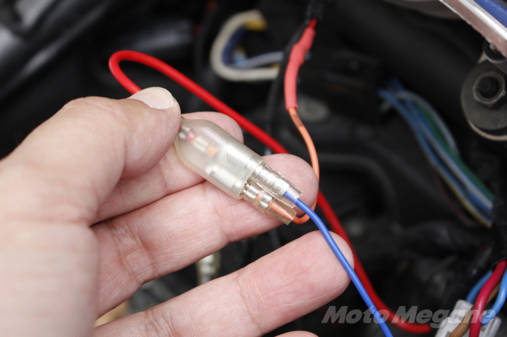 配線はバッテリーとオンオフ信号を得るための車体アクセサリー線への接続を行うだけである。多少バイクメンテできるだけの知識と道具があれば、自分で取り付けるのも難しいことではないだろう。