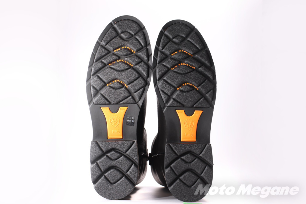 他のレザーブーツには無いようなパターンのソールは、雪や雨でも滑りにくい「スリップレジスタント」機能を有する。また、油分が付着しても劣化しない「オイルレジスタント」ソールなので、作業ガレージにも安心して履いていくことができる。