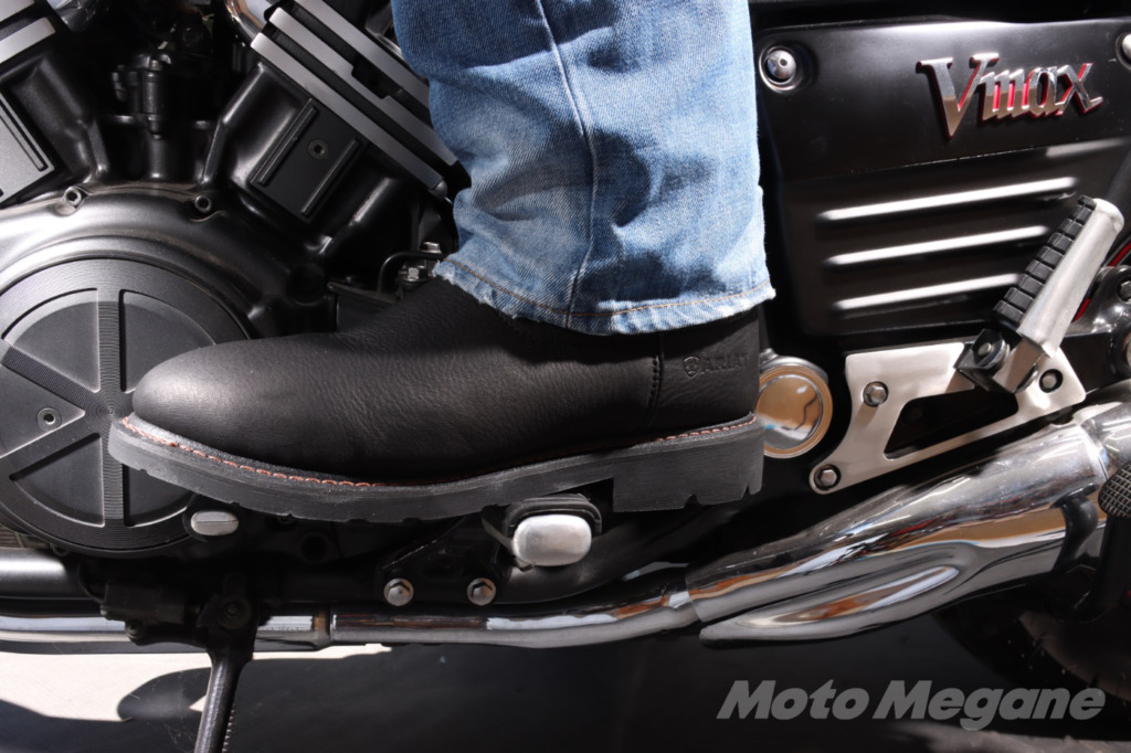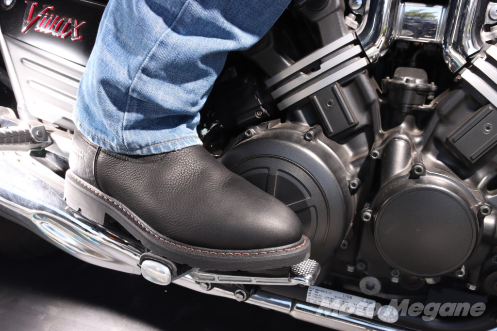実際に履いてみてまず感じるのは、とにかくレザーが柔らかいので履き脱ぎが非常にしやすい点である。ツーリング先でお座敷で昼食なんて時も気楽なのだ。