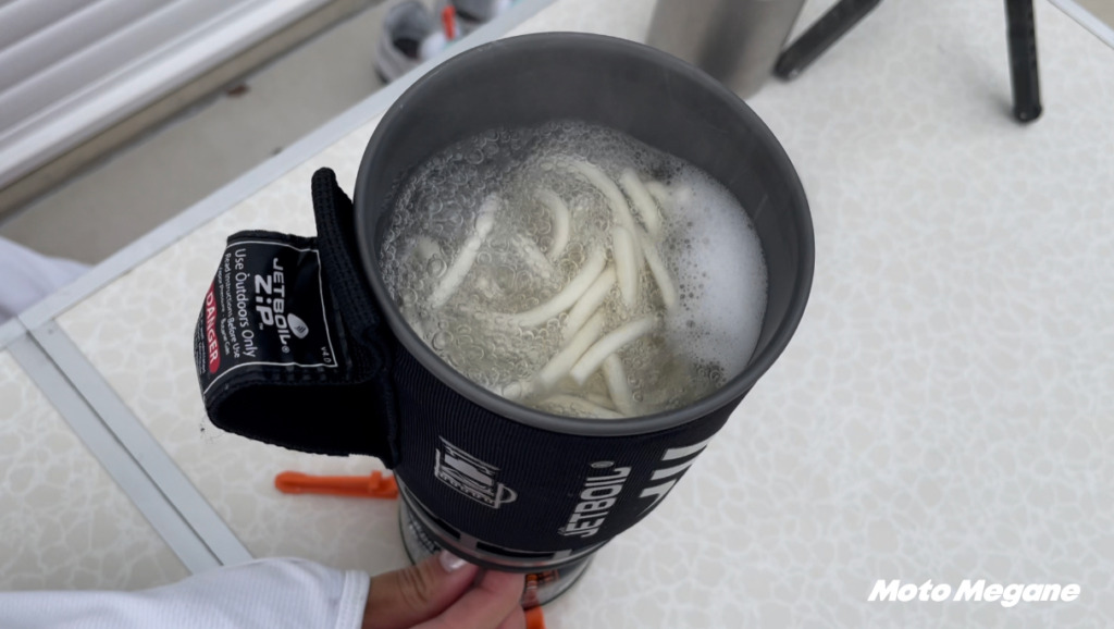 驚異的にお湯が湧くのが速いので、火力に気を使いながらうどんを茹でます。