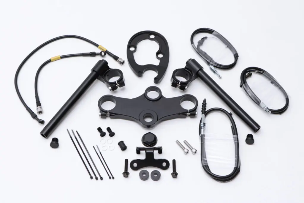 ブレーキホースやワイヤー類などハンドル交換に伴い必要なパーツをオールインワンパッケージで