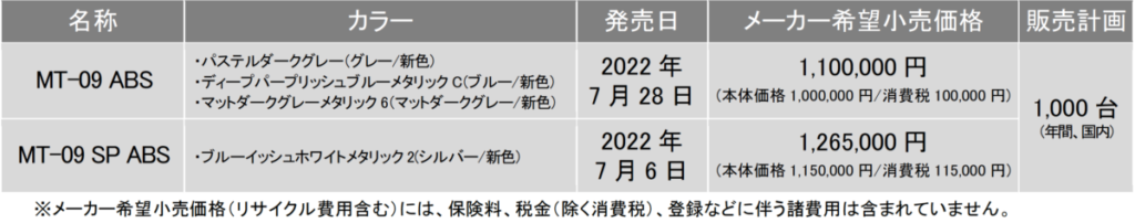 ロードスポーツ「MT-09 ABS」2022年モデルを発売