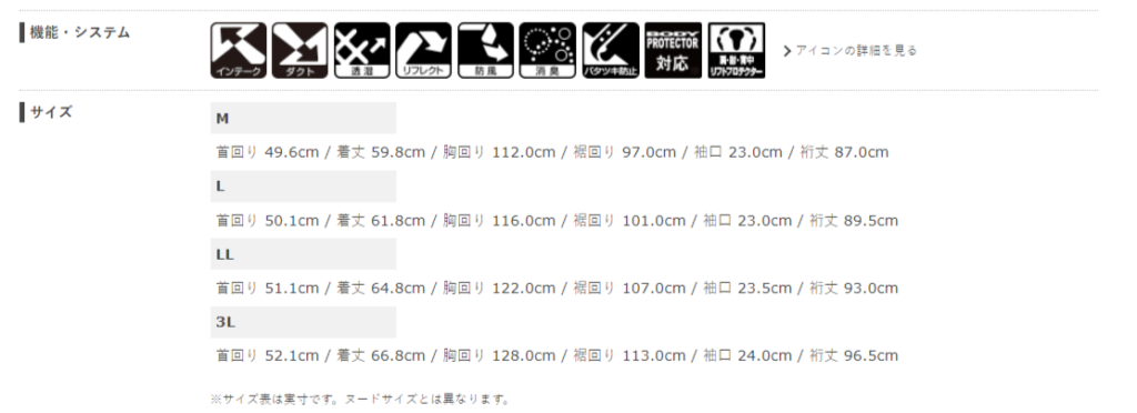 - 透湿防水生地によりツーリングでも使いやすく、胸のエアーインテークと背脇のエアーダクトで幅広いシチュエーションに対応しています。