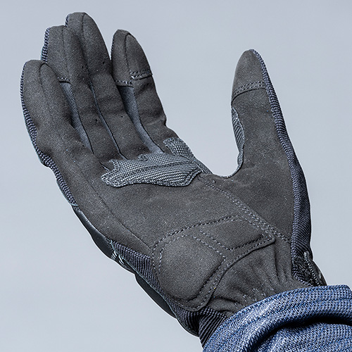 - 掌には伸縮性と強度に優れたスエード調人工皮革を採用しています。
