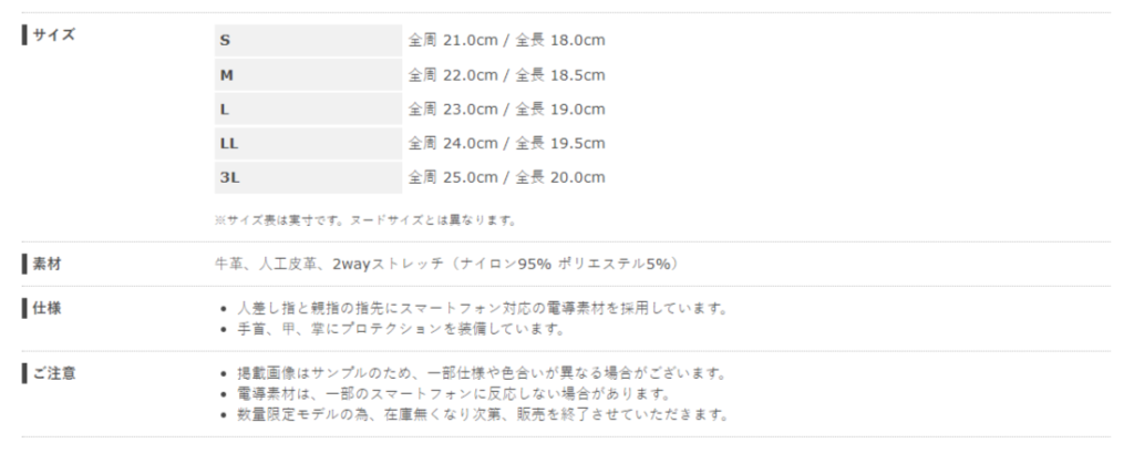 - 人差し指と親指の指先にスマートフォン対応の電導素材を採用しています。