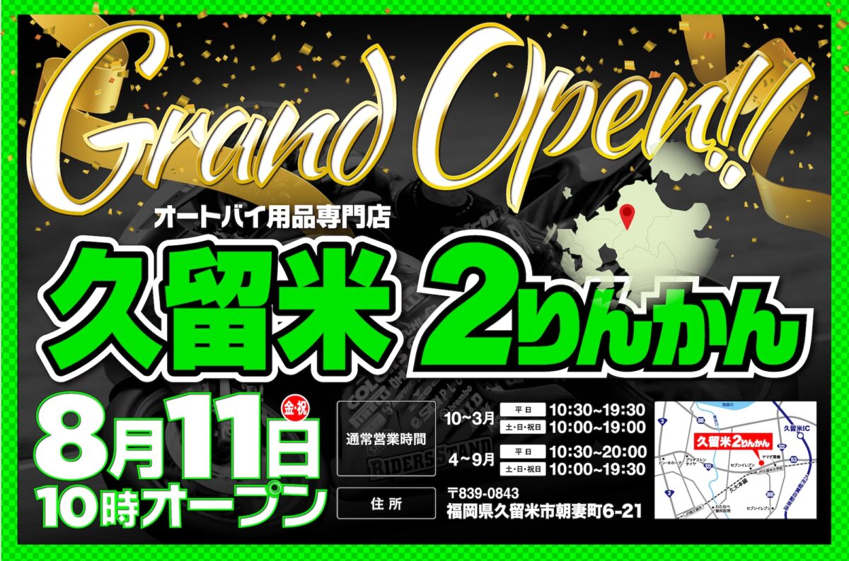 オートバイ用品専門店「久留米2りんかん」2023年8月11日(金・祝)オープン
