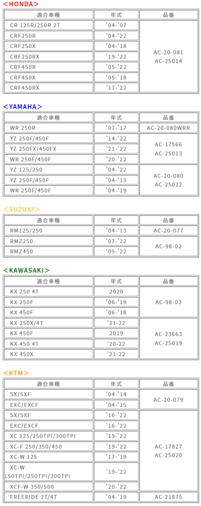 WR250R専用【AC-20-080WRR】のみ¥6,600(税込)