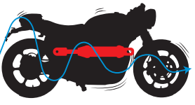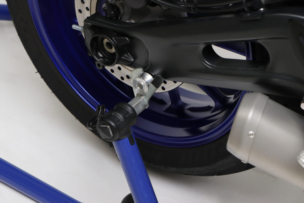 リアスタンドをかける際、傾斜の付いた溝がフックのセンターへ誘導することで、スタンドの固定が安定します。また、スタンドの外すときにはフックへの荷重がなくなるまでセンターをキープするため安心して作業を行えます。