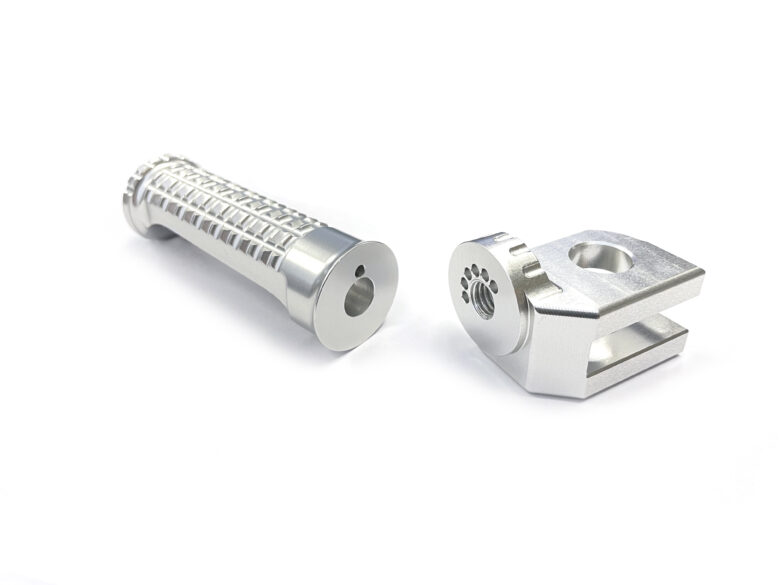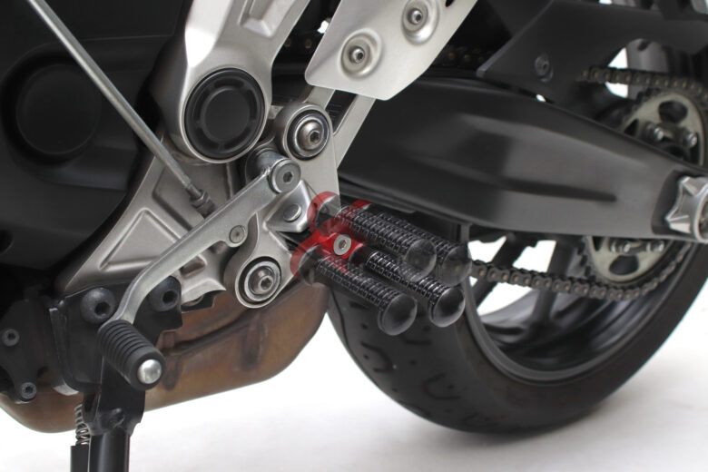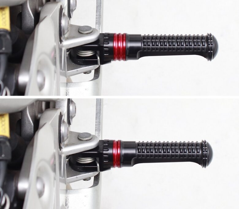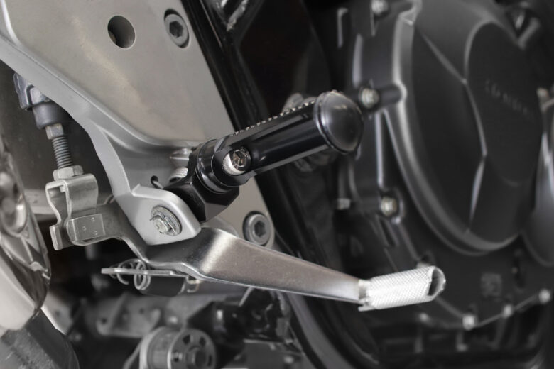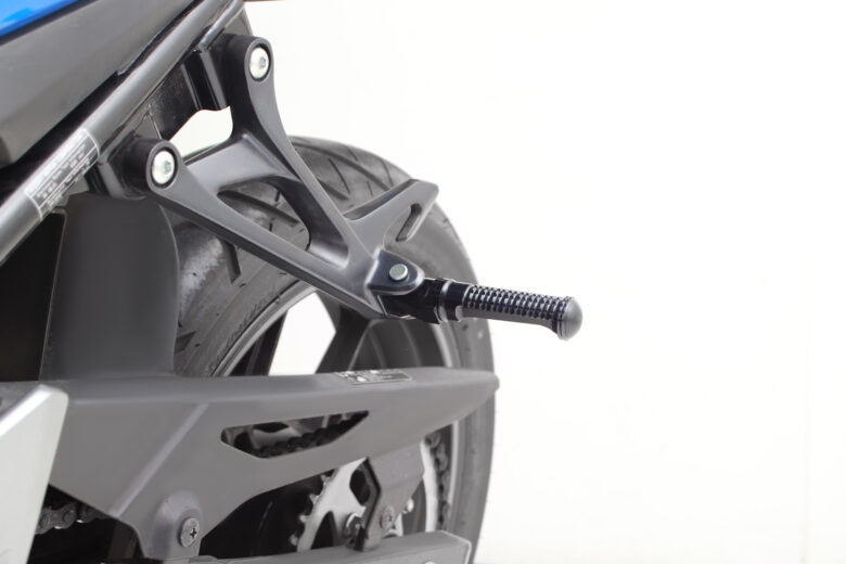 純正リプレイスのステップバー。ゲイルスピード フットコントロールキットと同じ、マシニング加工のエッジが効いた切削溝は靴底が滑らずサーキットでも十分にライダーの走りをサポートする。