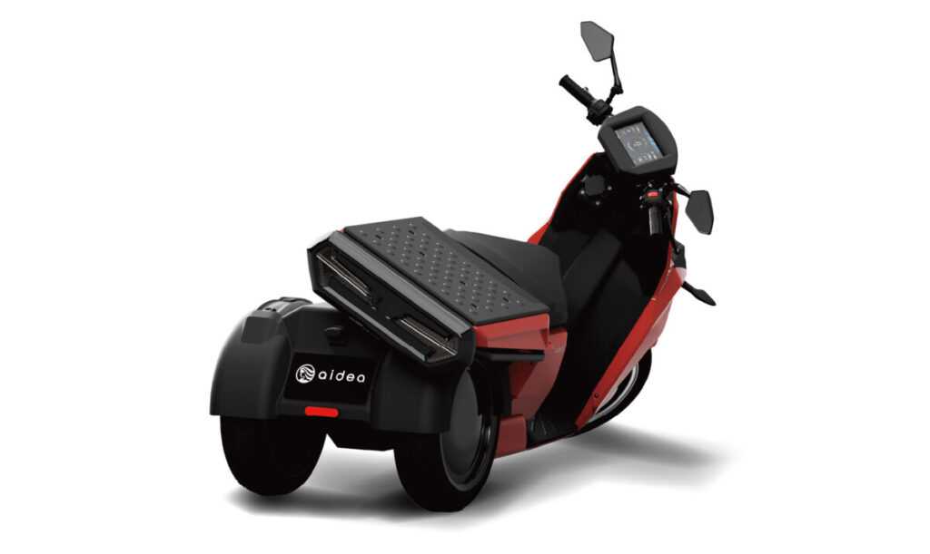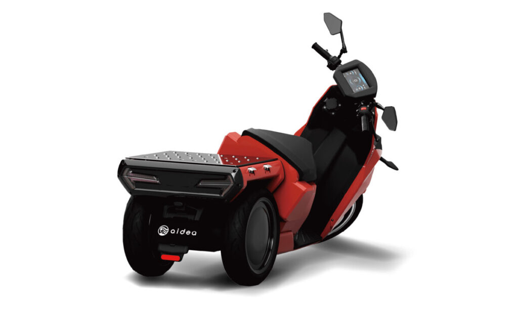 第50回東京モーターサイクルショーで出展した「AAカート(荷台傾斜タイプ)」は、aideaの3輪モデル「AAカーゴ」のような安定感と、2輪モデル「AAウィズ」のような軽快な操作性を併せ持つモデルです。