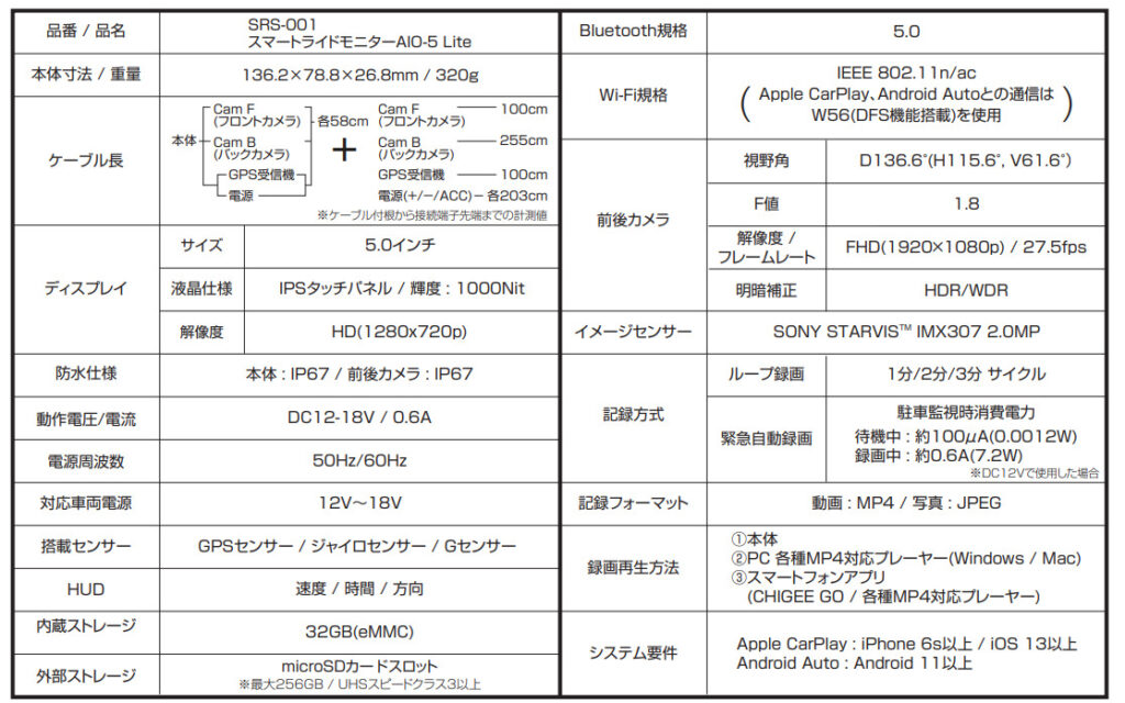 タナックス株式会社は、スマートライドモニター AIO-5Liteを11月29日(水)より発売すると発表した。