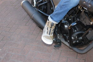 ステップ形状に合わせて設計されたアウターソールは操作性が高く、人間工学を基に長時間のライディングでも疲れにくく設計。