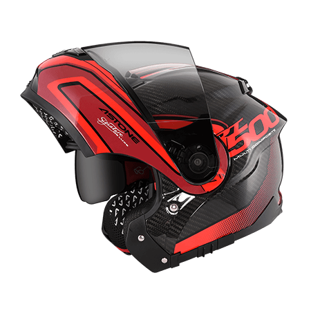 同製品は、フルフェイスヘルメットの持つ安全性や静粛性、防風性能とジェットヘルメットの持つ解放感や容易な着脱性、双方のメリットを兼ね備えたシステムヘルメットとなる。軽量なカーボン素材を採用し、重くなりがちなシステムヘルメットの軽量化を実現している。またチンガードにABSを採用し、カーボンとのハイブリッド素材とすることで、コストを抑えつつチンガードの剛性を確保しているのが特徴だ。