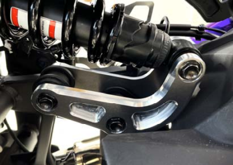 同製品は、スポーツライディングやハイグリップタイヤにも対応したリンクプレートKITとなる。純正のプレートと交換することで、車体姿勢(シート高)は変わらず、リアのアクスル荷重が約7%アップすることにより適度にリアの踏ん張り感がアップし、グリップの高いタイヤに交換した際にもリアの動き過ぎを抑制する事が可能だ。
