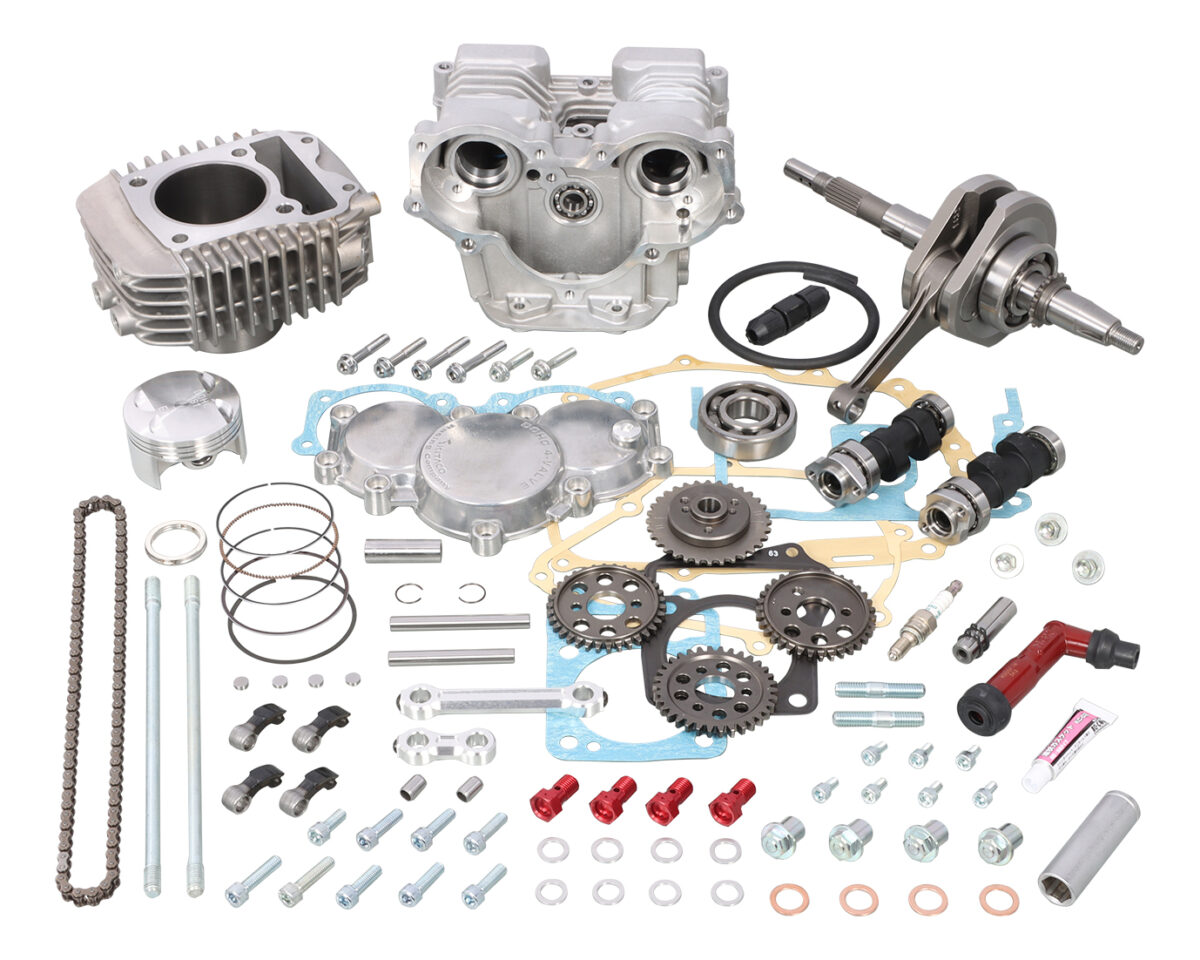 株式会社キタコは、グロム、モンキー125用181cc DOHC ボアアップKITを発売した。従来の4サイクルチューンのノウハウを活かしたDOHC4バルブシリンダーヘッドは耐久性と性能を両立。従来のSOHC2バルブヘッドを凌駕する高回転域のパワーの盛り上がりを実現した。価格は275,000円(税込)だ。また、DOHC ボアアップKITの必須オプションアイテムも多数発売されている。