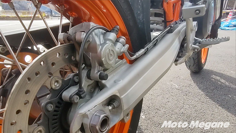 突っ込みは前後のブレンボで圧倒的なブレーキングができ、カーブは135kgの軽さで倒し込み、立ち上がりは68Nmのトルクで加速します。