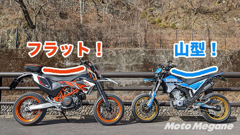 公道を意識したWR等のモデル(右)は足つきを意識してシートの中央が凹んだりしますが、SMC-Rは容赦ないです。