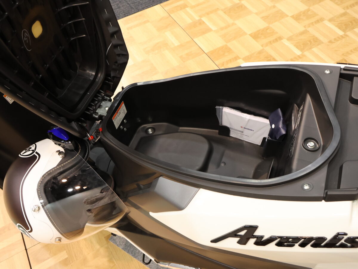 「アドレス125」と同じプラットフォームでありながら、エッジの効いたデザインが与えられた「アヴェニス125」。通勤快速仕様としてのアドレス125シリーズが持っていたスポーティな雰囲気は、この「アヴェニス125」へと引き継がれ、より強調されたというわけだ。