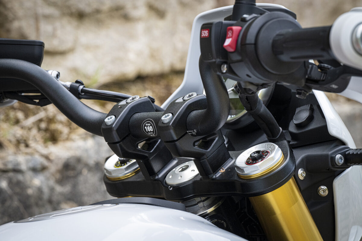 さらにブレーキも最新世代のABS Proへと進化しており、特にオフロードの走行では威力を発揮します。例えばダートでのブレーキングでフロントブレーキを使う時、強く握りすぎると前輪からズルッと転んでしまうのではないか……とか、思ってしまいますが心配はご無用。オフロード走行にも対応するABSは、舗装路と同じような感覚でフロントブレーキが使えるのです。エンデューロパークでの走行ではガレ場の下りやぬかるんだ路面も走行しましたが、躊躇せずにフロントブレーキを使用できました。また、Enduroモードではリアのブレーキスライドも可能なセッティングになっているので、リアブレーキを使ってちょっとだけリアを流して向きを変えてみようとトライしたときにも、決して滑りすぎてスピン状態に陥ったり、思ったより滑らずに違和感を覚えたりすることもない極めて自然なフィーリングでした。筆者はオフロードビギナーなので派手なアクションはできませんが、それでもなんとなく車体を振り回してオフロードで遊ぶ、という感覚を安全に楽しめたのでした。