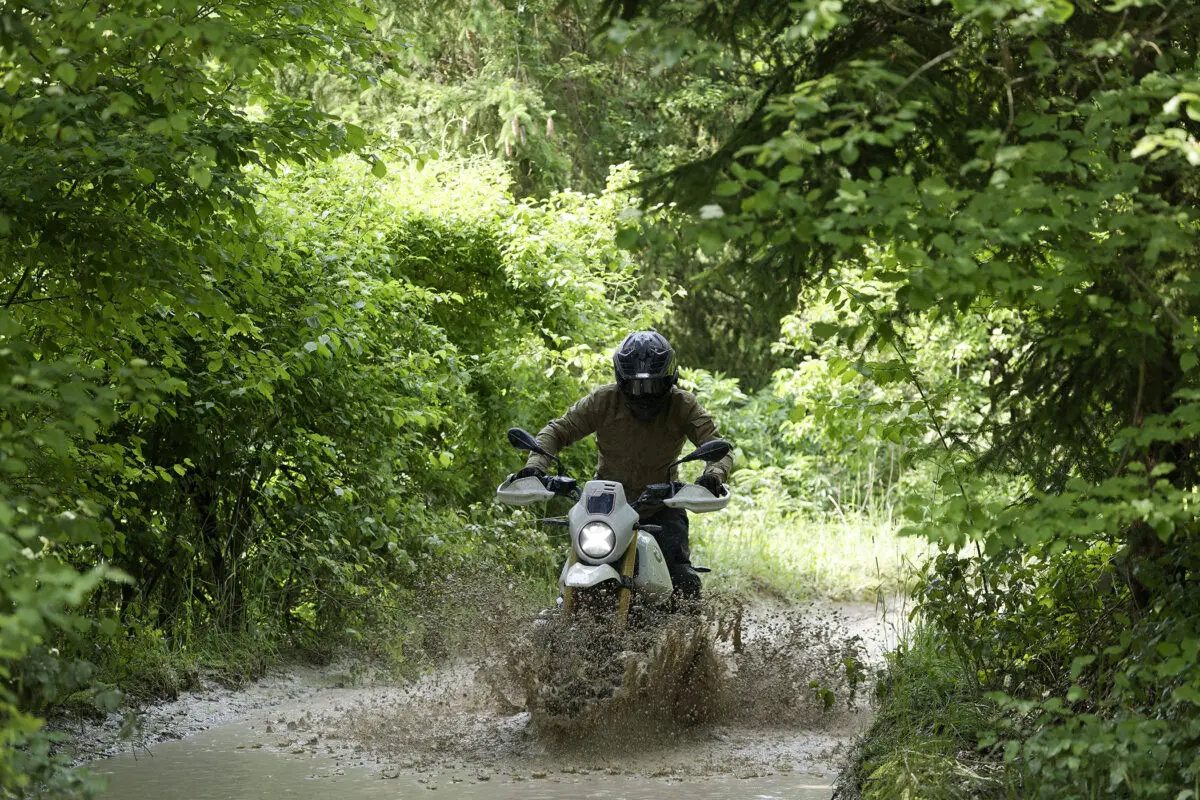 大きな岩がころがるロックセクションやガレ場、ちょっとしたジャンプができるスポットでも前後にサスペンションはつねにしなやかにショックを吸収します。電子制御サスではないものの、その動きにまったくの不満もありません。そしてシート下で程よく絞り込まれたフレームと、シートとタンクがなだらかにつながる外装デザインは、車体が振られるような状況でもつねに下半身で車体をしっかりとホールドができる。いままで自分のアーバンG/Sではなかなか難しかったオフロードでの車体コントロールがいとも簡単にできることを実感しました。もちろん、ハンドルやステップの位置関係もまさにオフロード向け、といった印象です。
