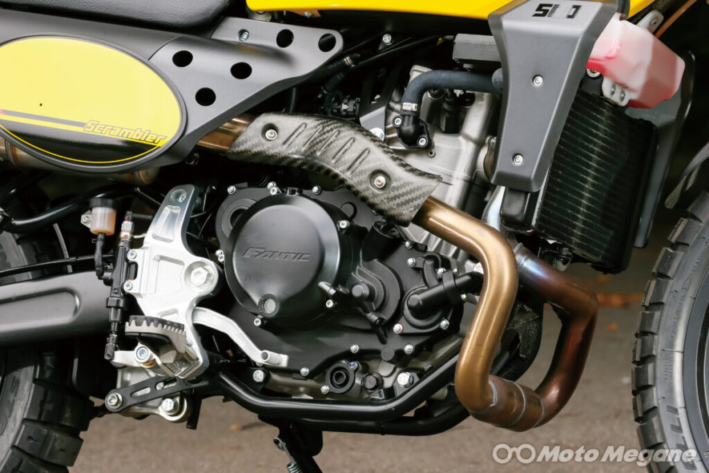 扱いやすい500cc単気筒エンジンとこだわりの装備で、走る場所を選ばない本物のスクランブラーに仕上がっている