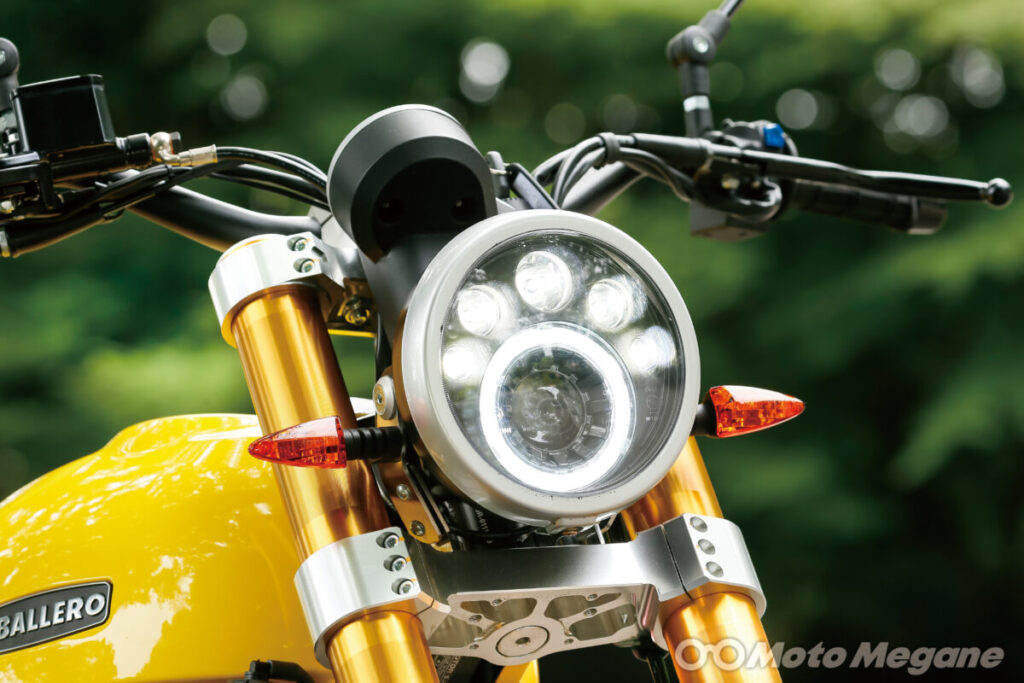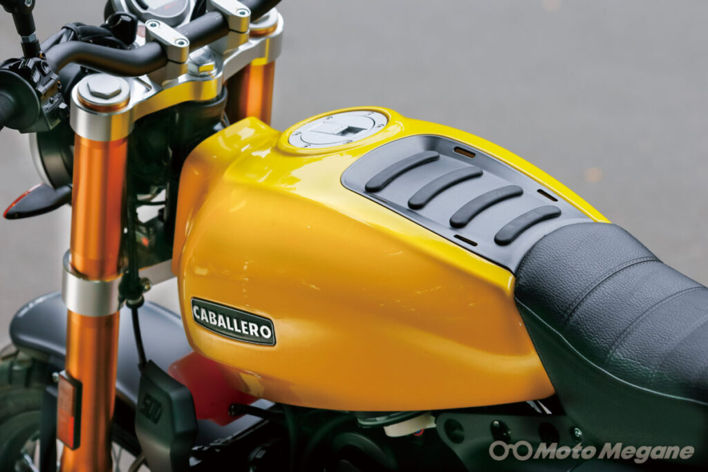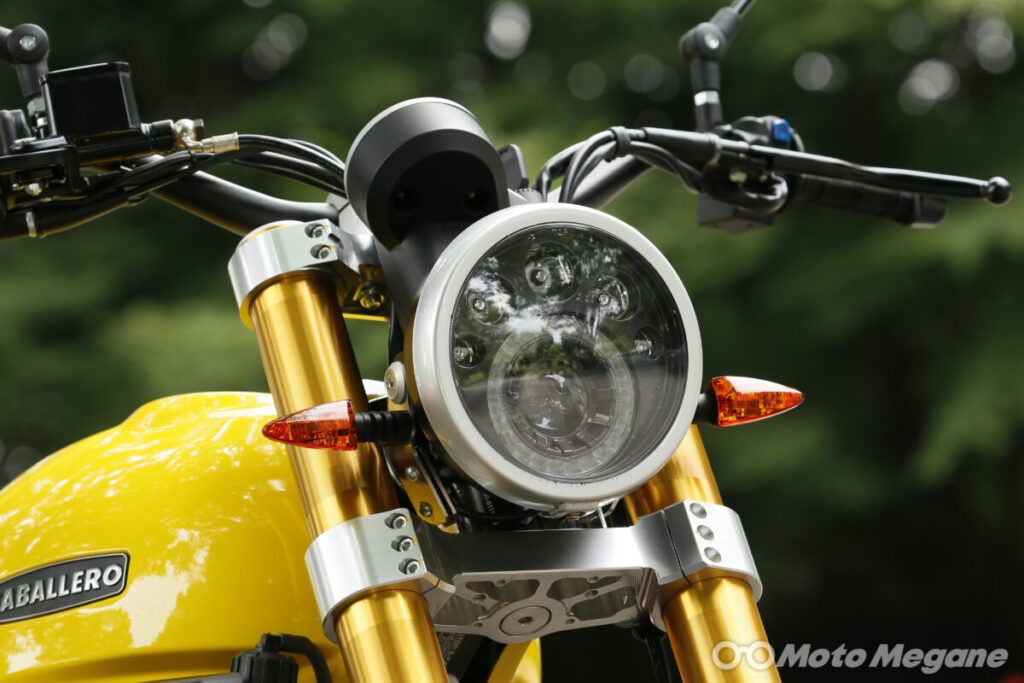 キャバレロ スクランブラーには、現在125㏄と今回チェックした500㏄がラインナップされている。どちらも水冷の単気筒エンジンが搭載されており、150㎜のストロークを持つ足回り、そしてダート走行にも対応するタイヤを装備しているのが特徴となっている。