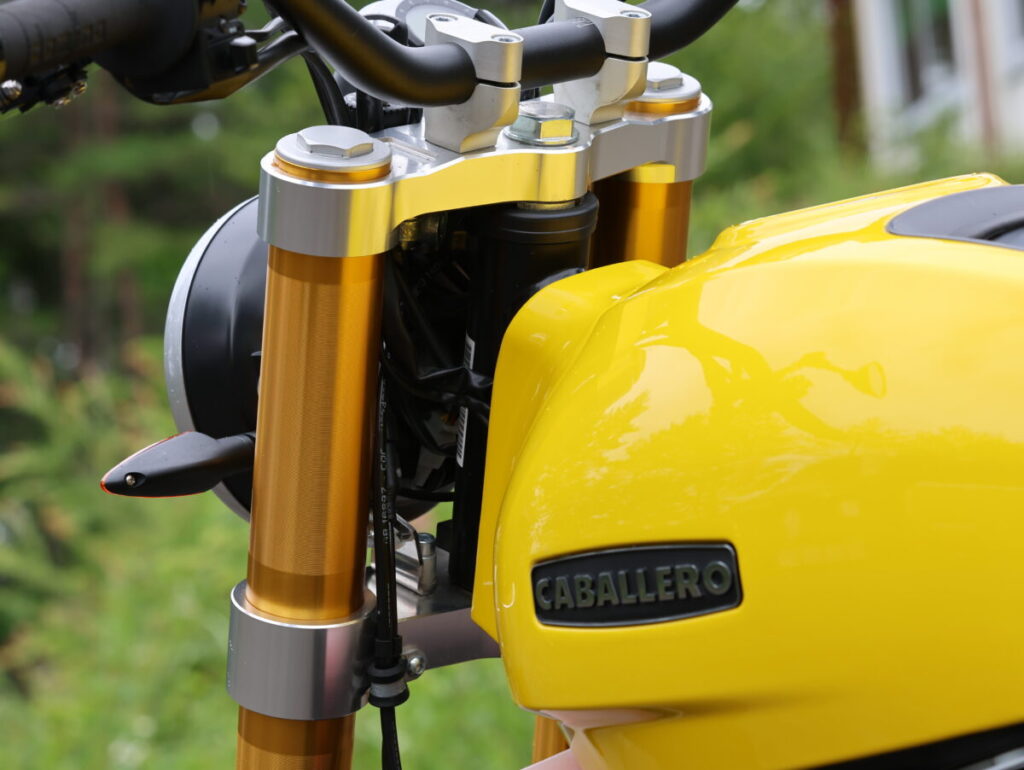 しかも、このキャバレロシリーズに搭載される449cc単気筒のエンジンは、最高出力が40HP/7500rpmで、最大トルクが43Nm/6000rpm。最高出力と最大トルクともに、割と低めの回転数で発揮する中低回転域重視の仕様となっている。常用域でスロットルを開ければ、地面を蹴り上げて進むような加速が存分に楽しめるのだ。