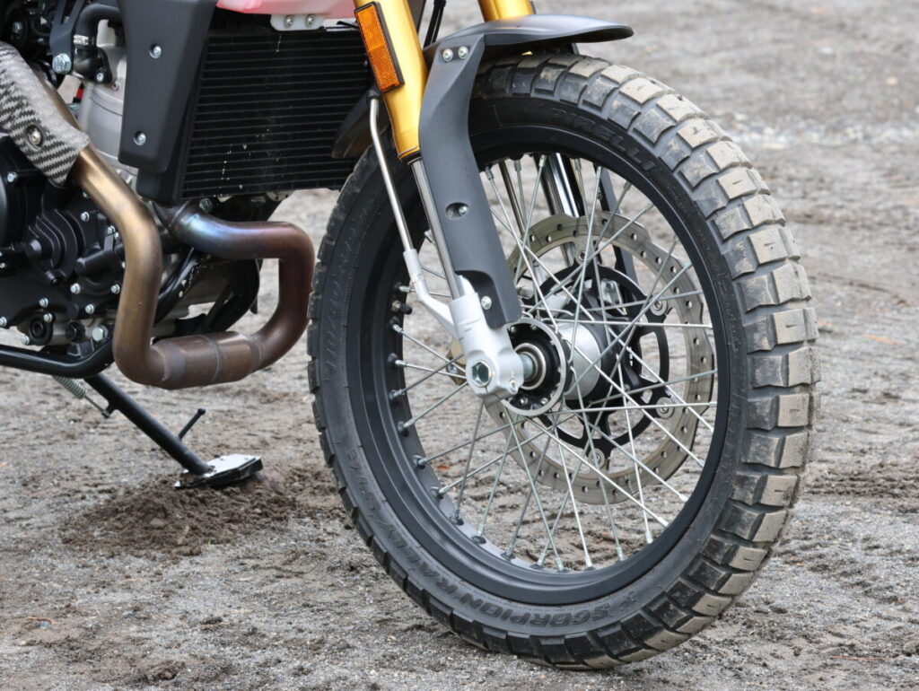 世の中にある見掛け倒しのスクランブラーモデルとは違い、キャバレロスクランブラー500は、きちんと“ダートを楽しめる”スクランブラーに仕上がっている。