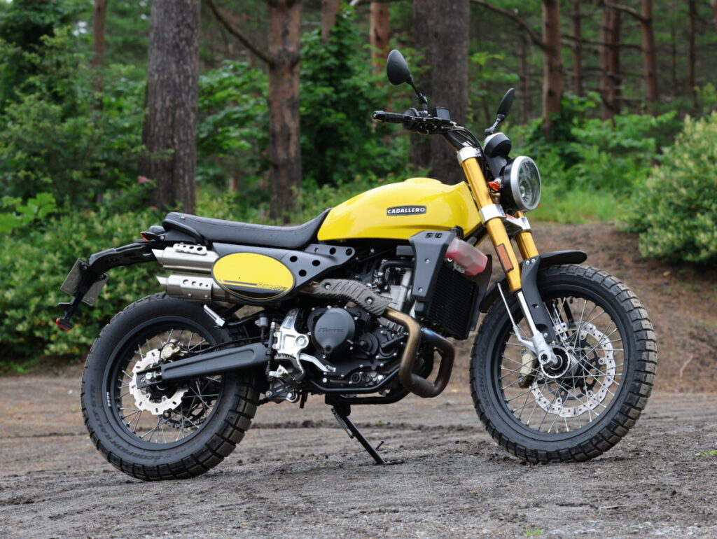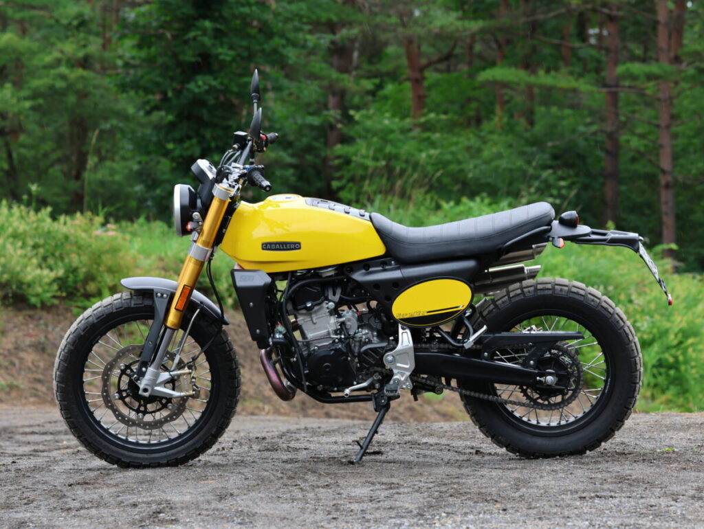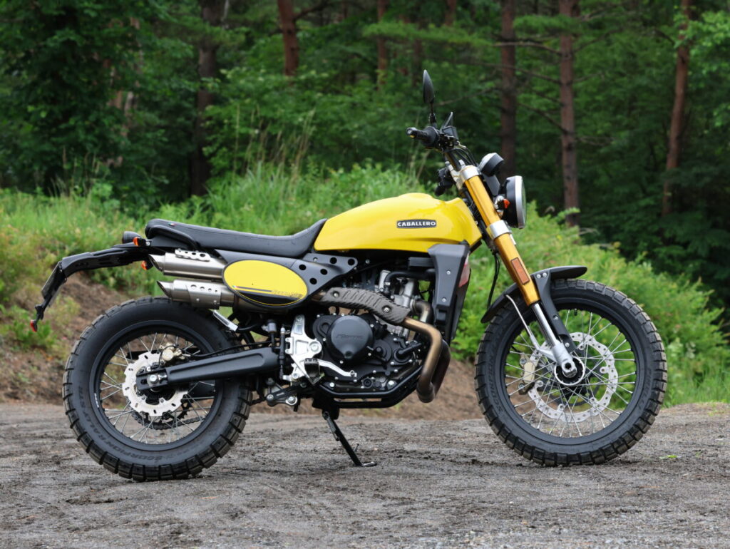 スタイリングはビンテージオフロード風のスクランブラースタイルながら、日本のダート林道くらいならなんなく走れてしまうキャバレロスクランブラー500は、オンロードもオフロードも楽しめる真のスクランブラーといっていいだろう。