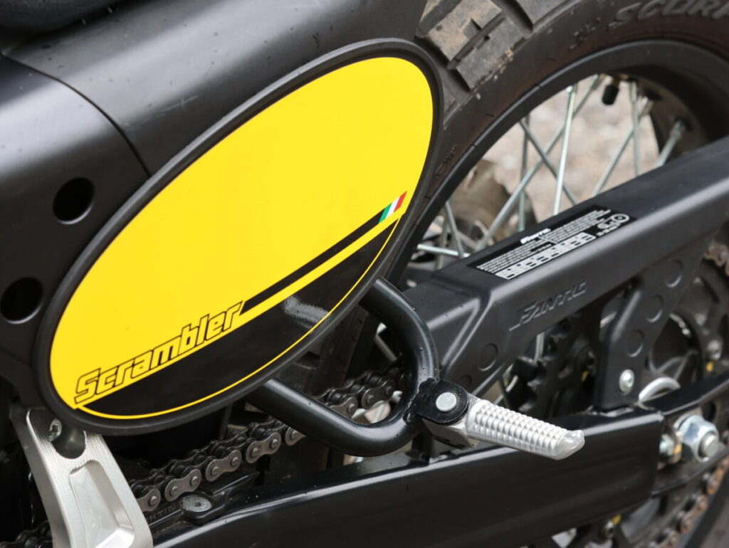 カジュアルなウエアの似合うスクランブラースタイルは見かけ倒しではなく、しっかりオフロード走行もできてしまうのだ。