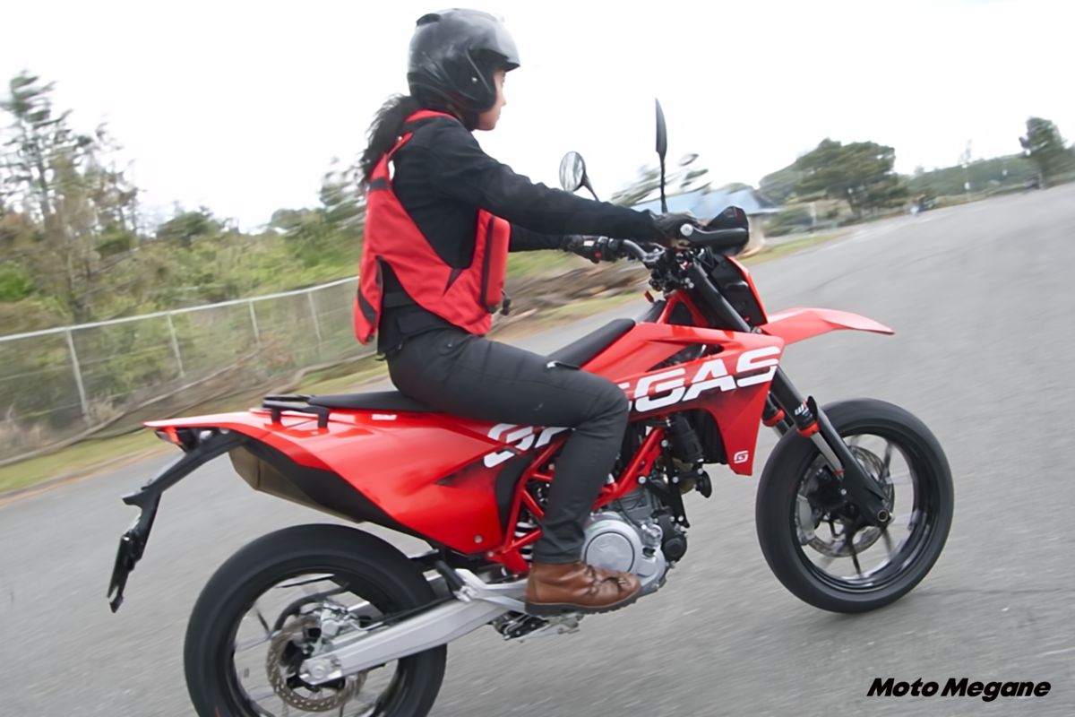 まさに、今回試乗したGASGAS(ガスガス)のSM700はこの言葉通りで、アクセルを開けるからこそ面白い、刺激に満ちたマシンだったのだ!