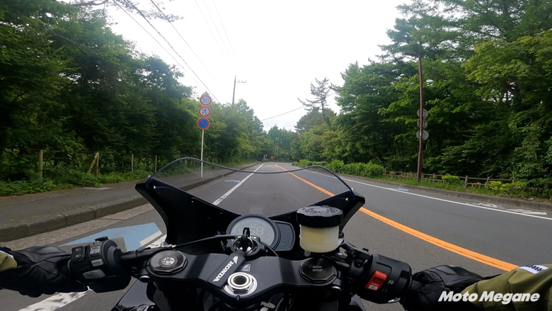 試乗会場となった山中湖からすぐのところに峠道があったので走行してみたが最高に楽しい。